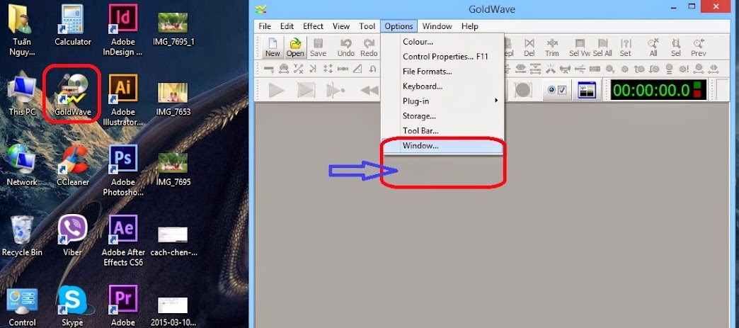 -Tiếp theo là tiếp hành Crack phần mềm để sử dụng vĩnh viễn: mở GoldWave lên vào vào Options => chọn Register để đăng nhập Mã Key phần mềm.